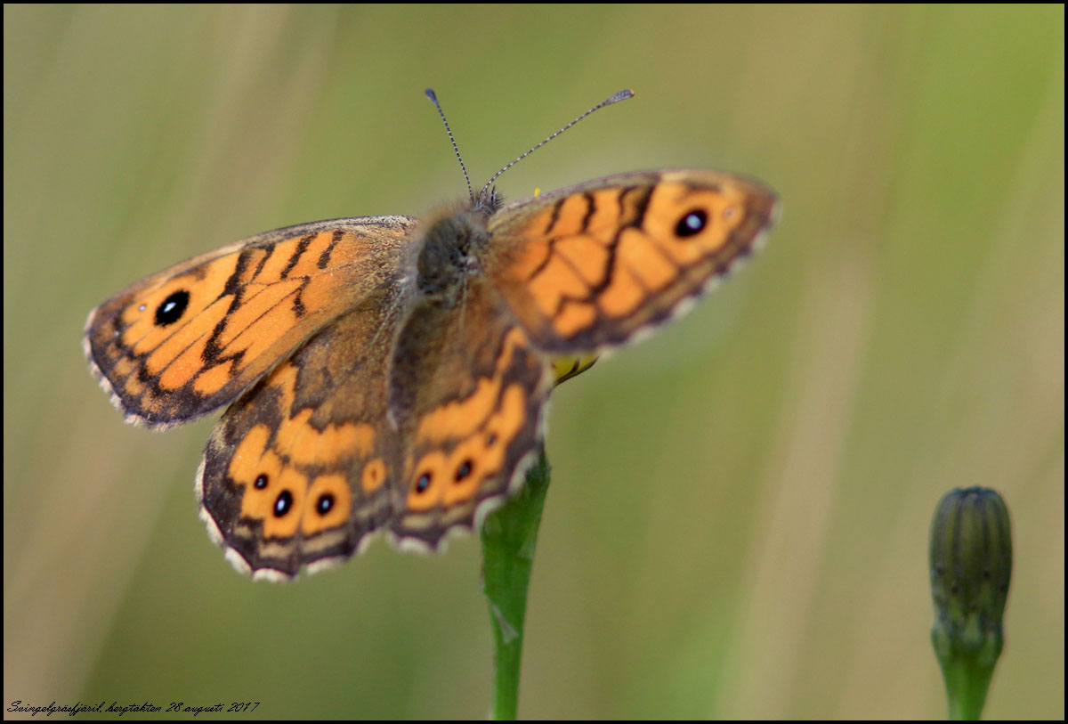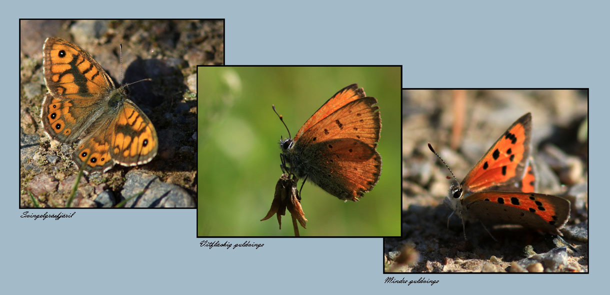 | Längs vägen ovanför bergtäkten fanns minst tio svingelgräsfjärilar. | |