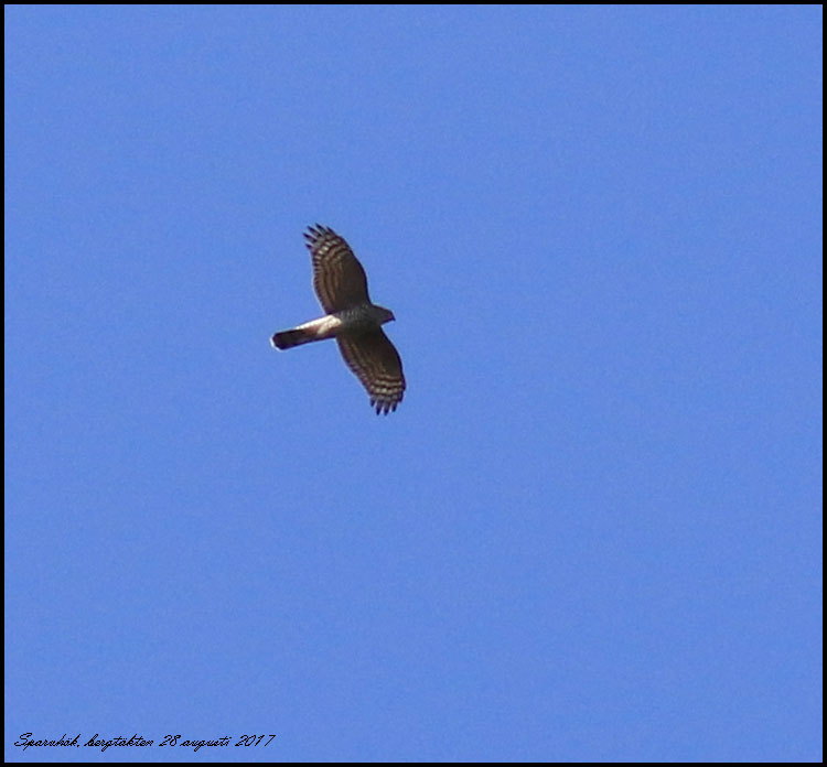23 augusti. Den här höken passerade båtplatsen vid Lidhem i morse. Jag uppfattade den först som en duvhök men när jag kollar på den här bilden så är det ju sparvhök. De är inte alltid lätta de bägge hökarna!