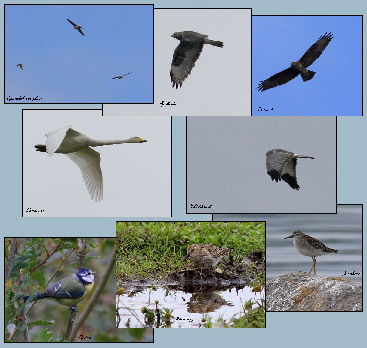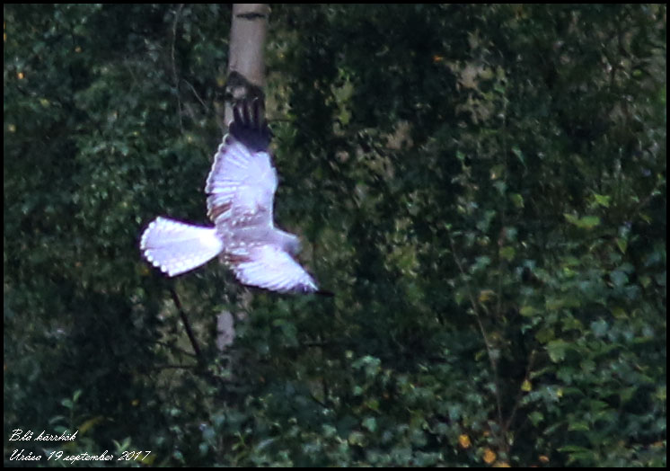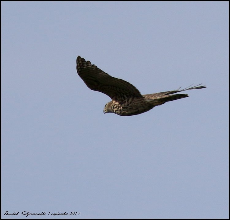 | 19 september. Fågelkurs idag med promenad vid Djurle våtmark och Barnsjön. Blå kärrhök hanne 2K. Kvarsittande juvenila armpennor är avslöjande. |