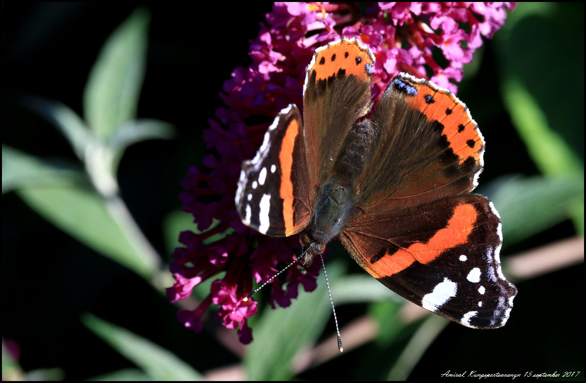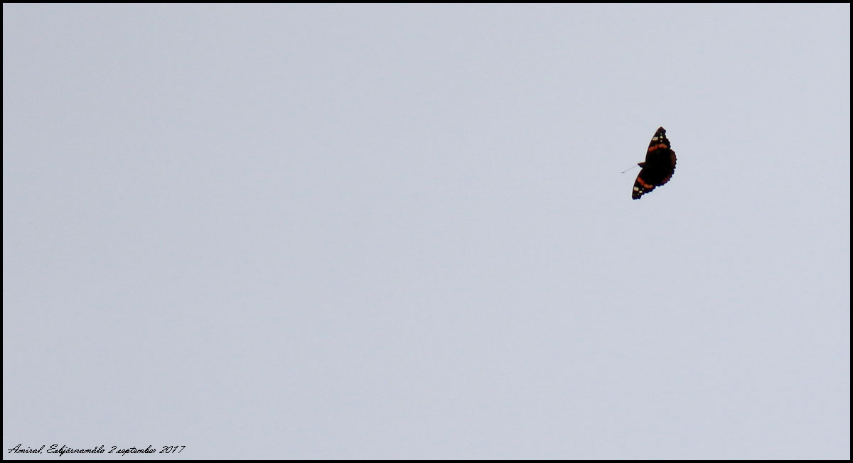 Den här amiralen kom flaxande och glidflygande i trädtoppshöjd hemma vid huset.