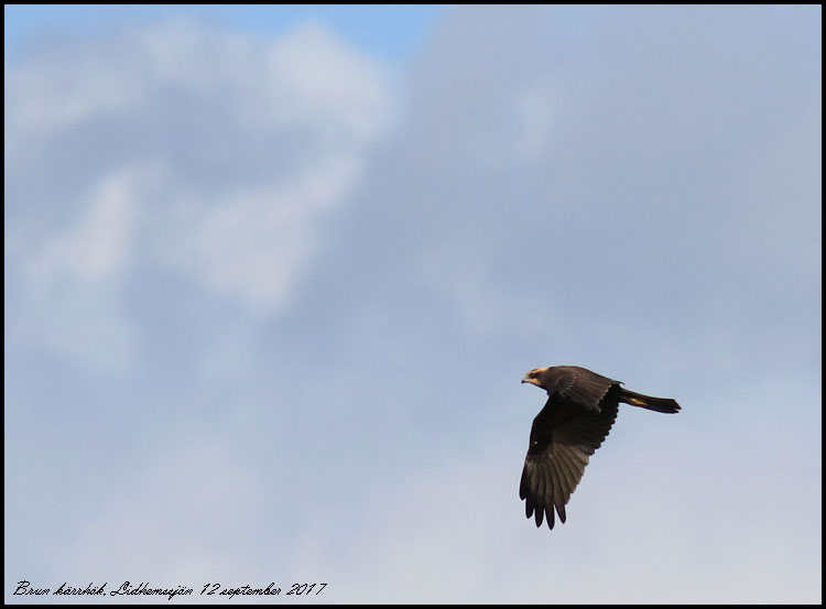 | 12 september. Fågelkursen har besökt Barnsjön och Djurle våtmark. Några av oss fortsatte sedan till Lidhemssjön där vi såg en brun kärrhök, troligen samma som vi såg över Djurle myr. |