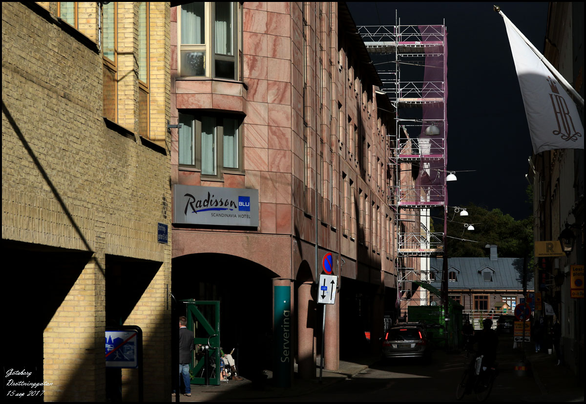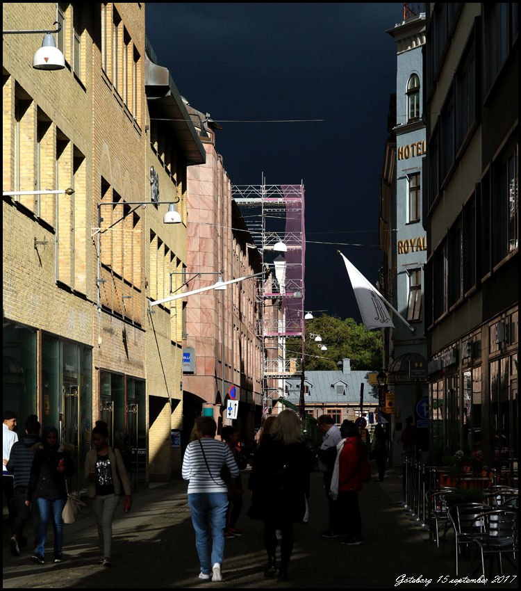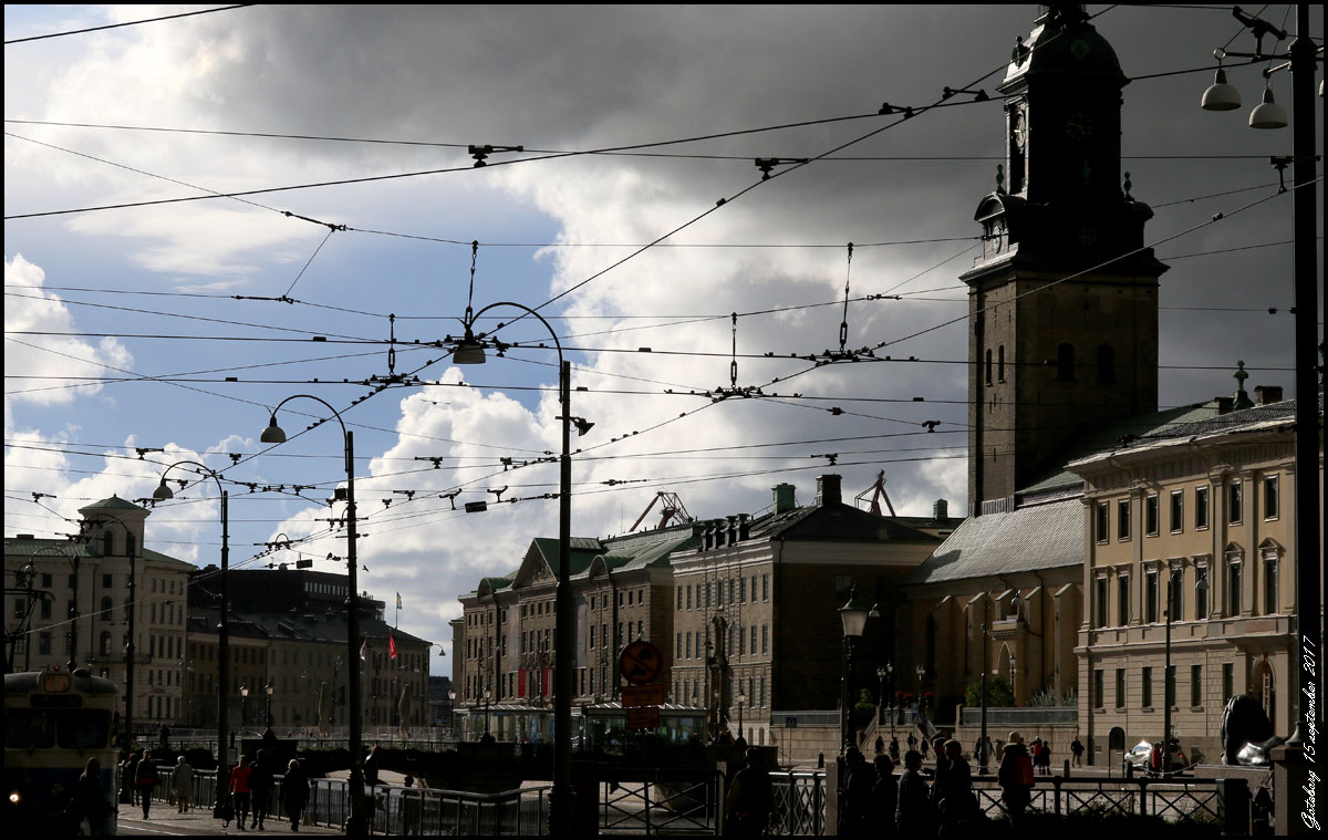 | 15 - 17 september. Den här helgen har vi varit i Göteborg. På fredagen drog svarta moln med åska och regn över staden. |