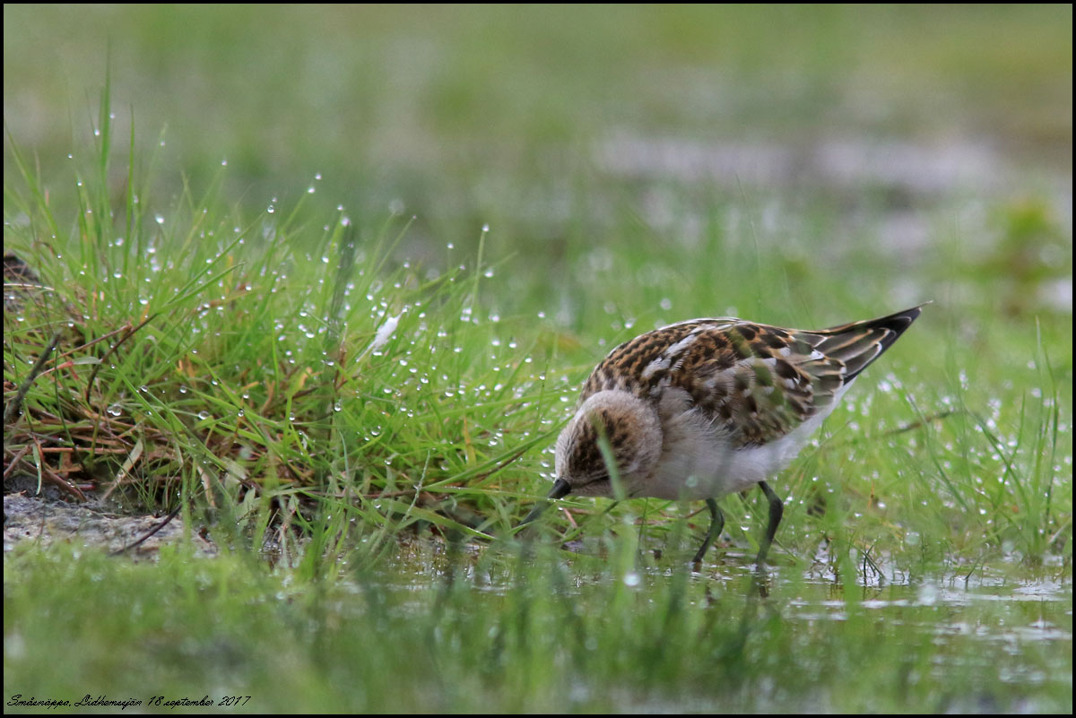 | 18 september. Förmiddagen och en dryg timme till ägnades åt fåglarna vid Lidhemssjön. Jag fick bilder på en småsnäppa som jag väntade ut vid stranden. |