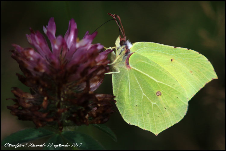 Ett par citronfjärilar, tre amiralfjärilar och en eldsnabbvinge har jag sett idag. Fjärilarna närmar sig flygandets säsongslut. |