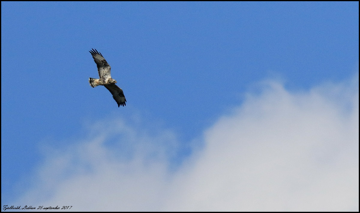 25 september. Idag har vi haft en vacker höstdag. En del rovfåglar var i luften. Fjällvråken är väl en adult hanne. |