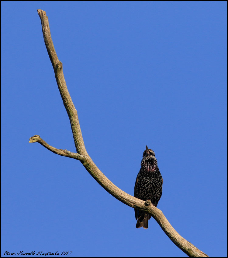 | 28 september. En stare satt och sjöng norr om Husvalla. |