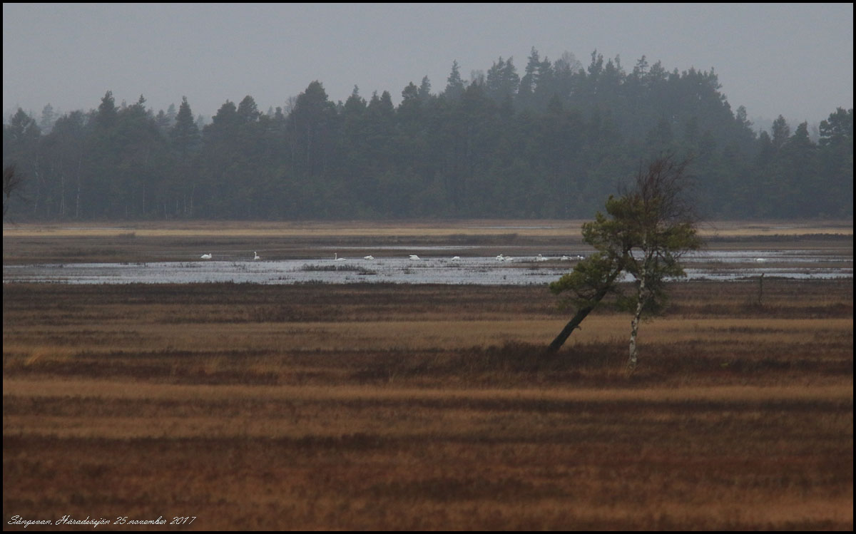 25 november. Jag har deltagit på SOF Birdlifes landsdelsmöte i Jönköping. På vägen dit gjorde jag en avstickare till fågeltornet vid Häradsösjön. Inte mycket fågel men gråsiskor och sångsvanar sågs.