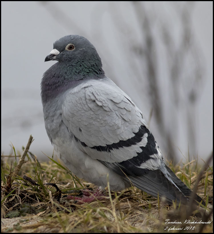 2 februari. Då var vi på Öland igen. Dagens promenad gick från Husvalla ut till Klockholmsudd. En brevduva landade vid strandlinjen och var förstås helt orädd. |
