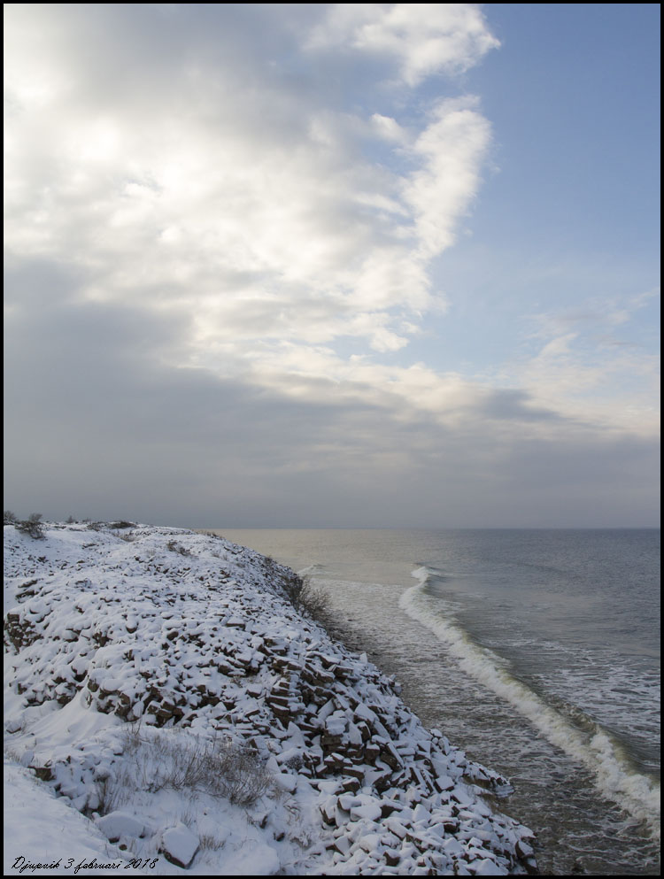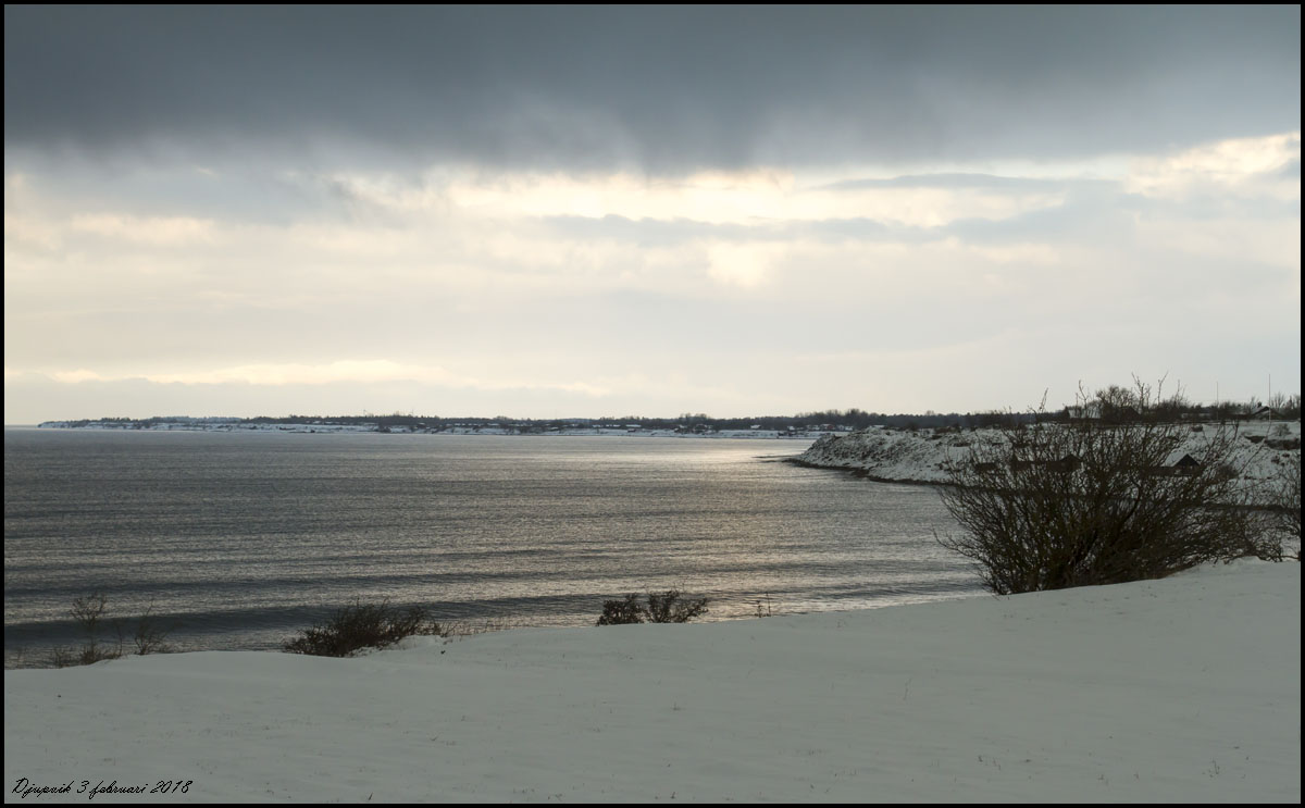 | 3 februari. Vi åkte över till Djupvik. Inte så mycket fågel ute i sundet men ett vackert landskap. Först gällde sol med klar himmel. Men sedan kom det in grå moln från söder som ändrade ljuset helt. |