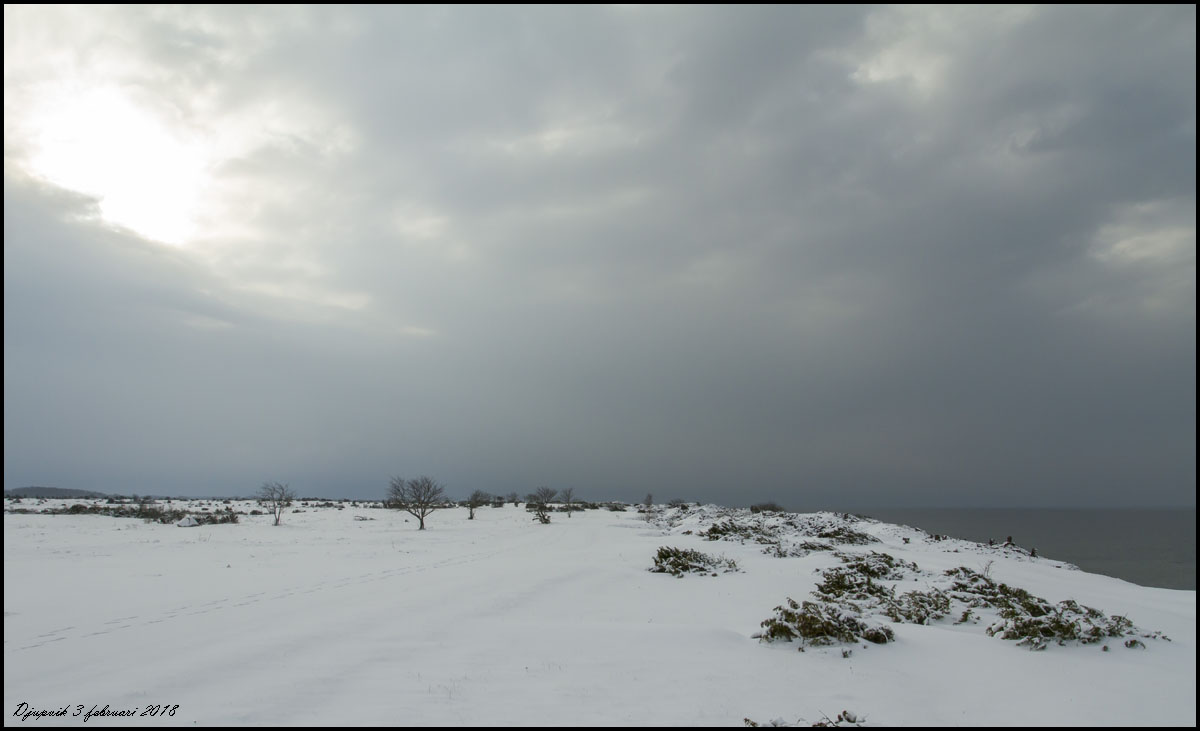 | 23 februari. Lite Öland igen. Ingen vår i sikte utan snötäckt landskap och en svag men kall nordlig vind. Vi tillbringade ett par timmar i Kårehamn. |