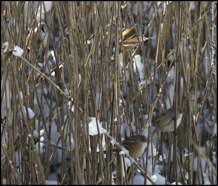 | 5 februari. Häromdagen upptäcktes några skäggmesar vid Ingelsund. De var kvar när jag kom dit idag. Det var länge sedan jag såg skäggmes i Tingsryds kommun. |