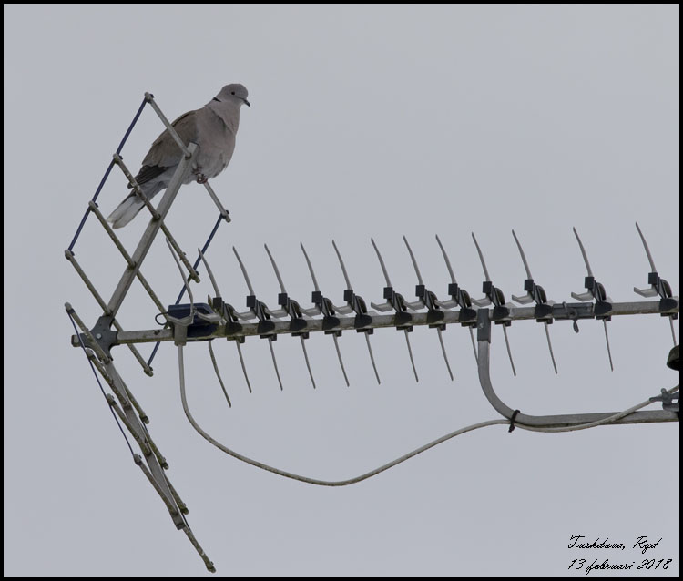 | 13 februari. Nu har vi lite vinter med is på sjöarna och en knapp decimeter snö. Jag har varit till Ekenäset, Ryd, Blidingsholm och Gräskulla kanal. I Ryd har jag avnjutit sjungande turkduva. |