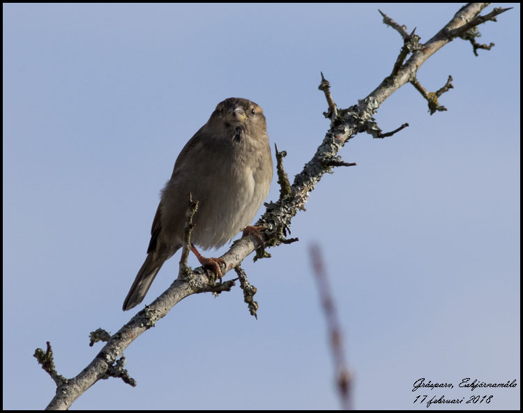 | 17 februari. Ny tomtart idag! En gråsparv besökte fågelmatningen |