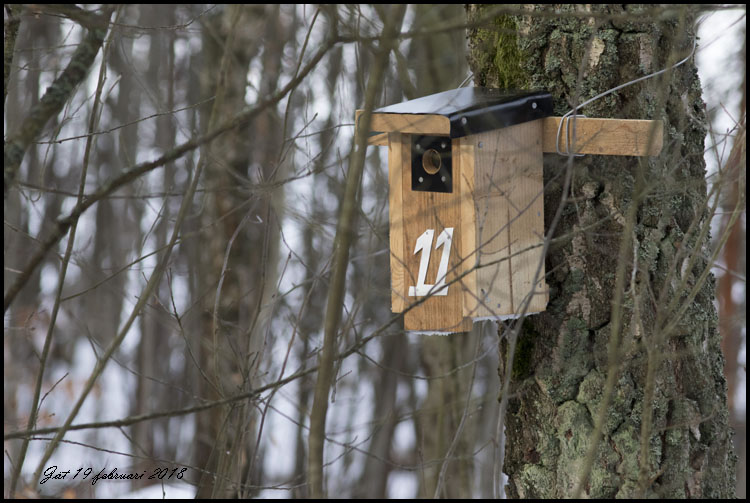 | 19 februari. Uppsättandet av holkar längs Jäts naturstig fortsätter. Den här vann jag på fågelklubbens lotteri. |