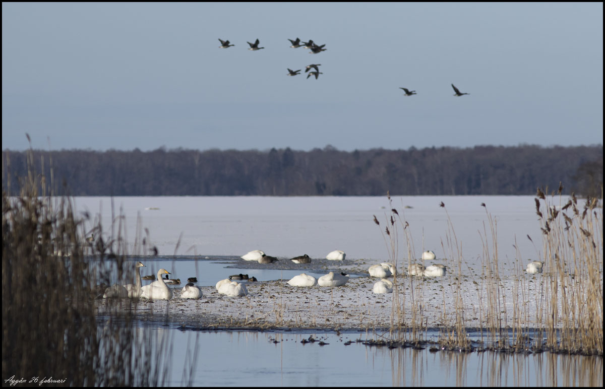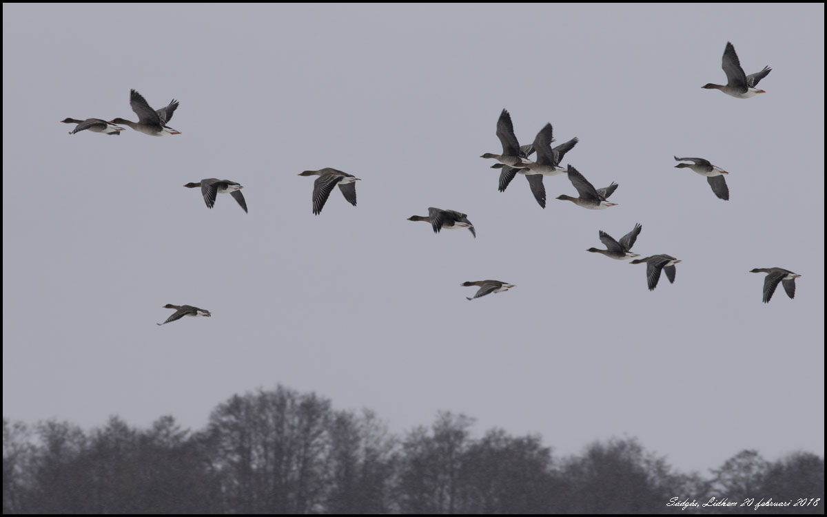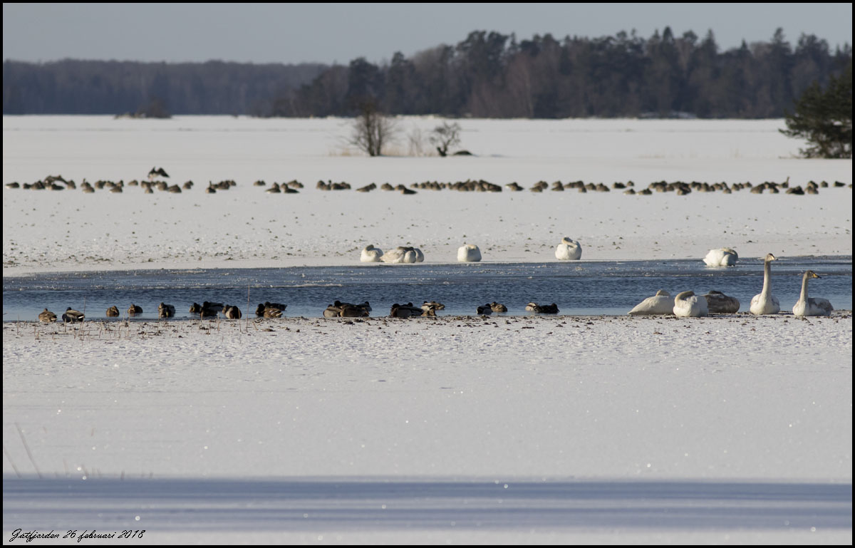 20 februari. Lite motion och skådning vid Aggån och Lidhemssjön. Sädgäss söder om Kullarna. |