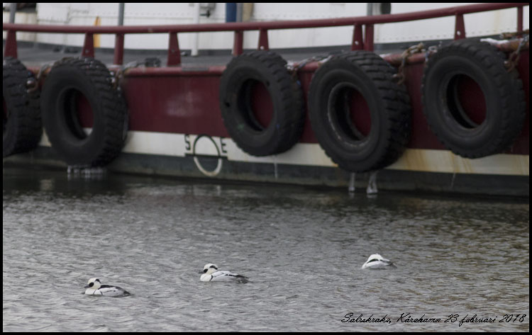 Mycket änder och svanar som vanligt. Men också flera smålommar. Småskrake passerade förbi udden |