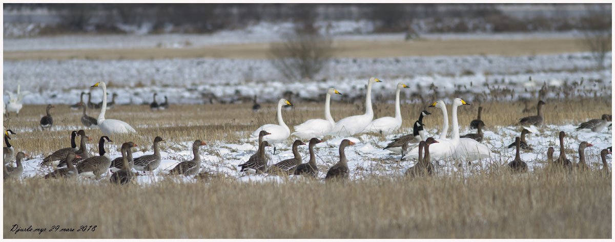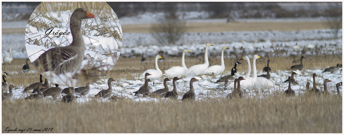 Sångsvan, säd-, kanada- och grågås på Djurle myr |
