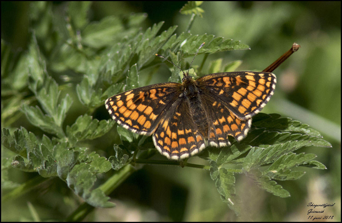 9 juni. Kamgräsfjäril vid Södra Greda |