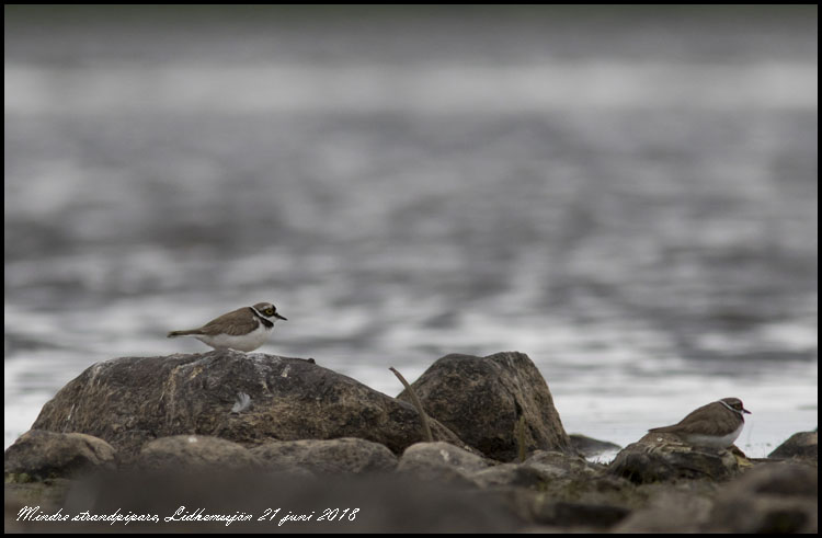 | 21 juni. Kort besök vid Lidhemssjön. Mindre strandpipare nedanför tornet. |