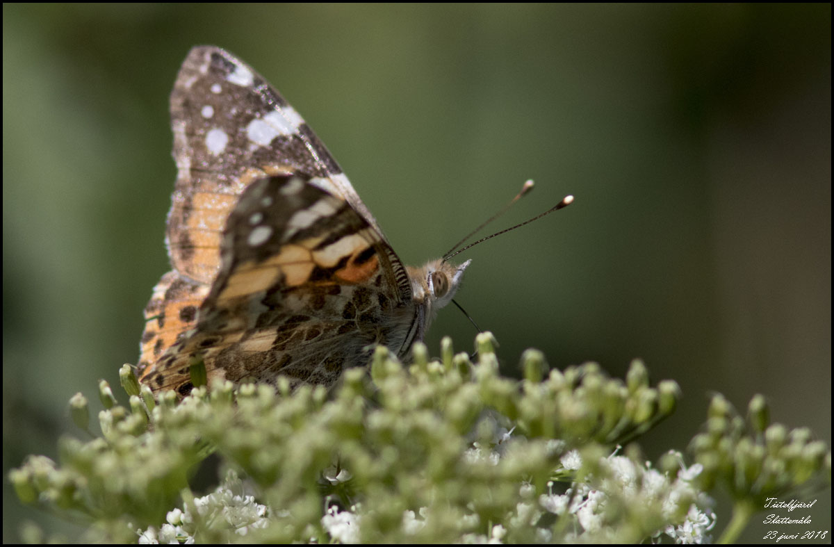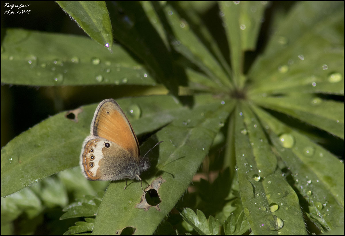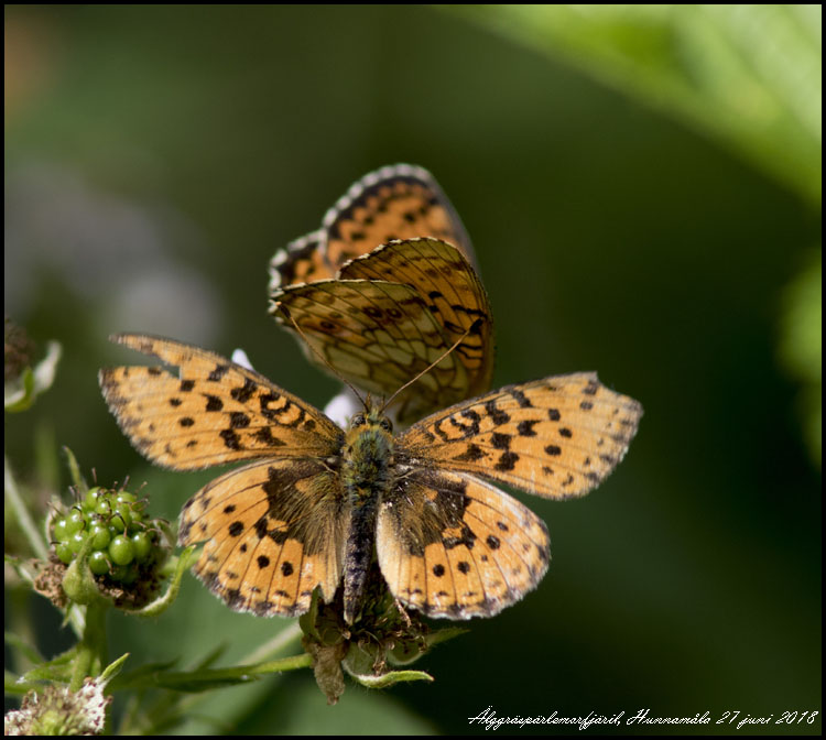 Till höger en pärlemorfjäril som försvann utan att visa undersidan.