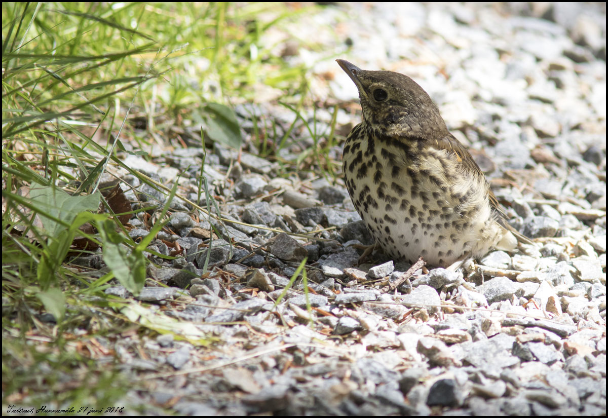 15 juni. Svarthätta matar flygga ungar intill huset. En unge räddade sig in under bilen då en skata ville ta den. |