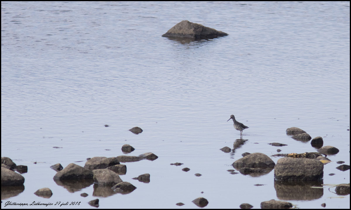 27 juli. Efter några timmar vid Djurle våtmark besökte jag Lidhemssjön. Så lågt vattenstånd har jag nog aldrig sett tidigare. Gluttsnäppa, brushane.storspov, grönbena och enkelbeckasin kunde noteras. |