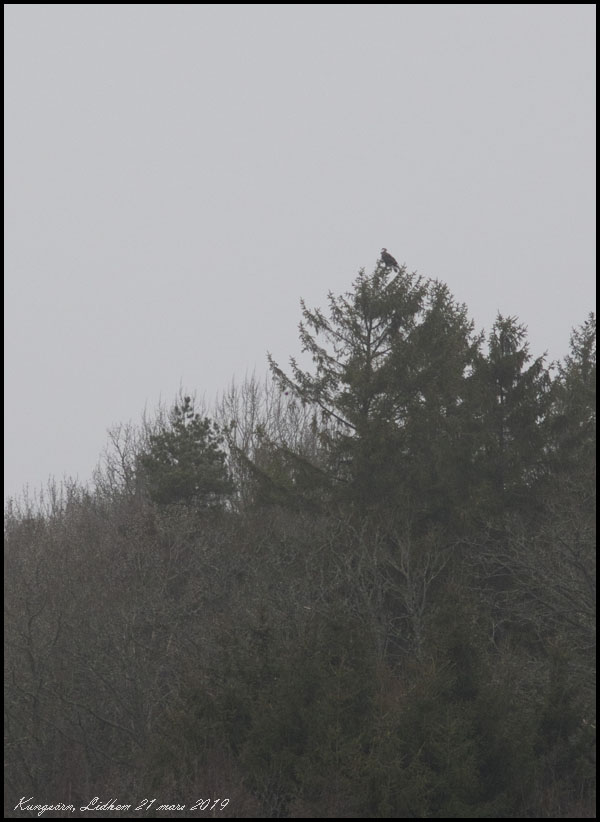 | 21 mars. Kungsörnen som upptäcktes i lördags vid Lidhem fanns kvar idag. |