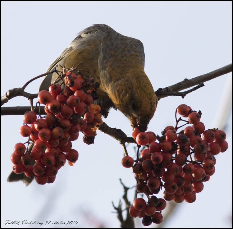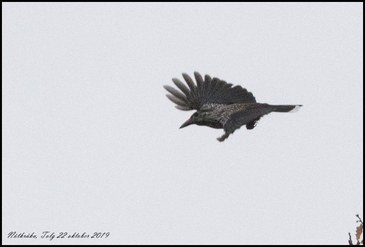 | 22 oktober. Vid dagens utflykt med fågelkursen fick vi se nötkråka. |