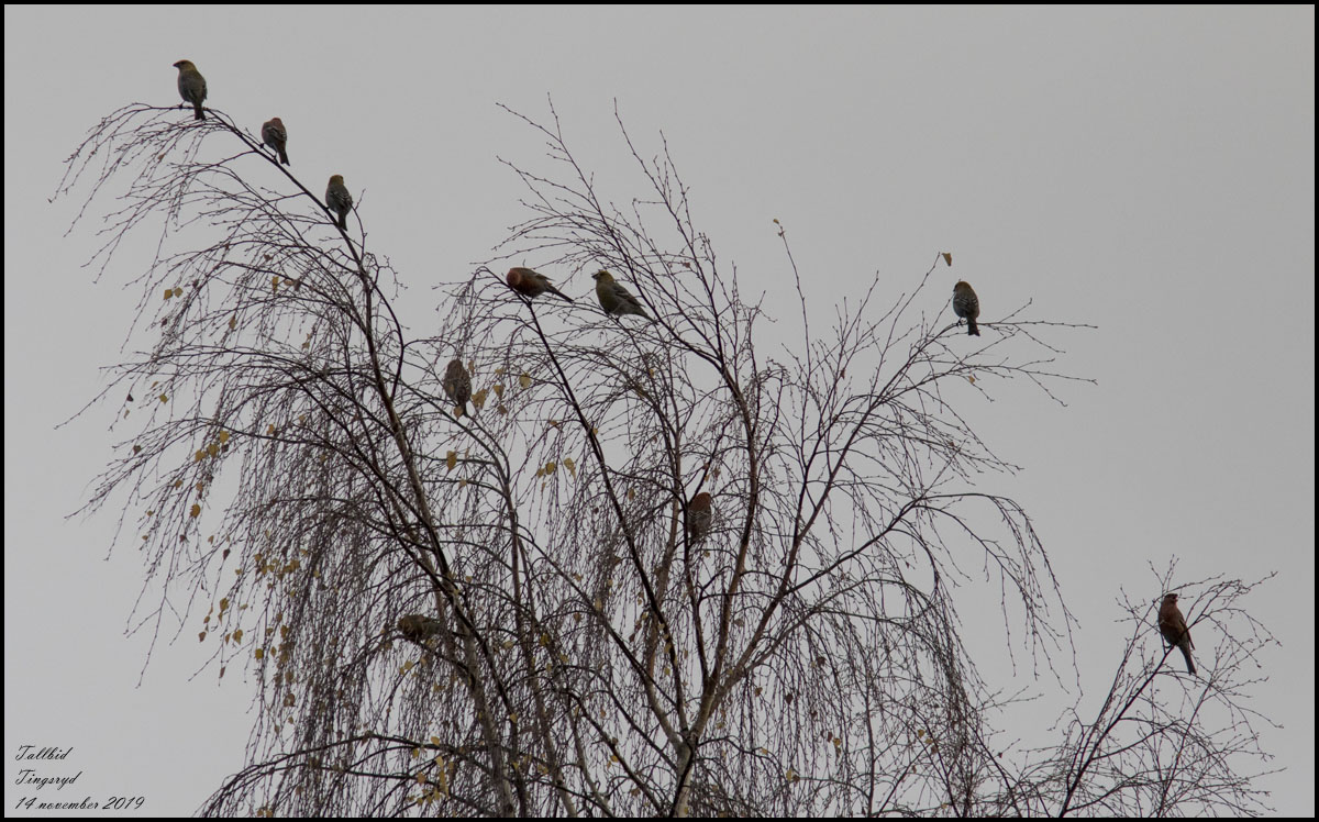 | 1 december. Sex steglitsor satte sig i en rönn i Eklanda |