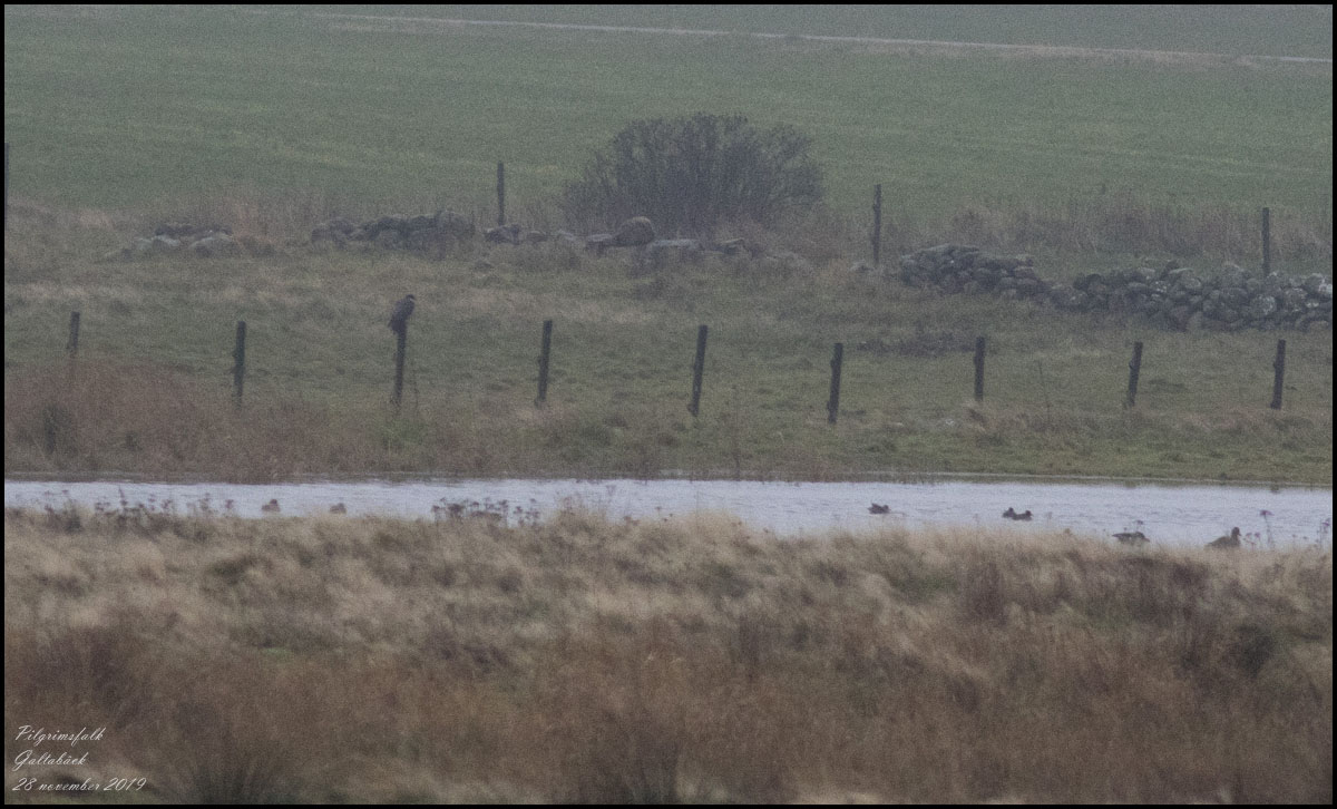 Pilgrimsfalk i duggregnet vid Galtabäck |