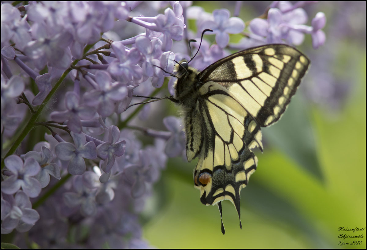 9 juni. Makaonfjäril hemma i syrenbersån |