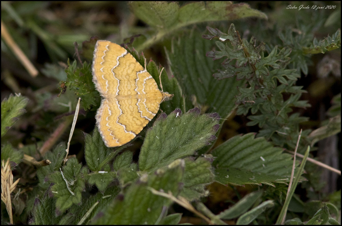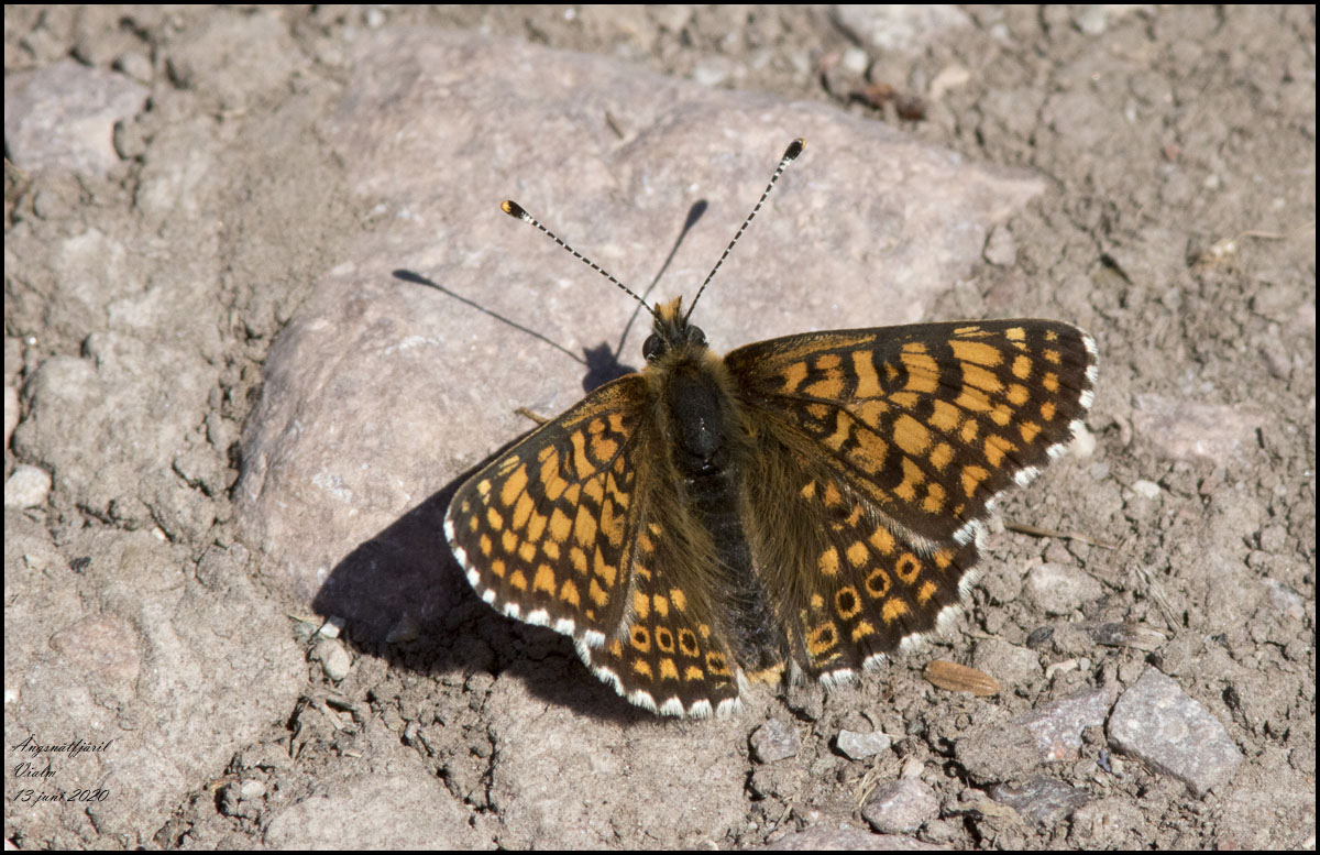 8 juni. En svingelgräsfjäril njöt av solen vid ladugården |