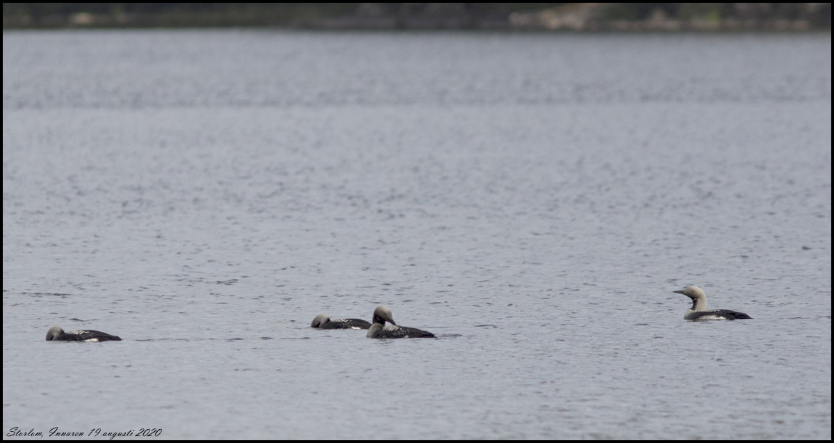 19 augusti. Idag har vi varit i Kråkenäs och då blev det en promenad till Innaren. Åtta storlommar låg i viken. |
