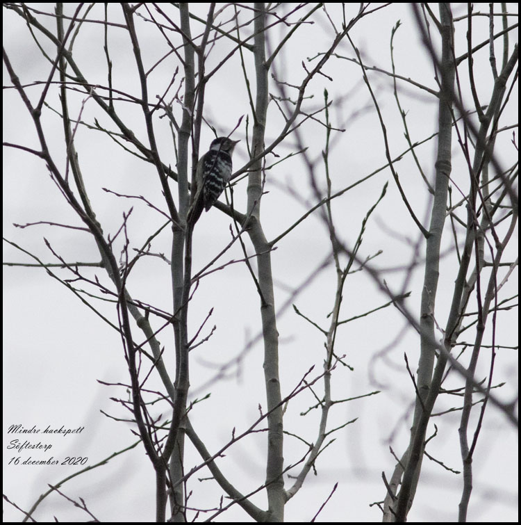 | 16 december. Vi upptäckte en mindre hackspett intill Eskilsån i Söftestorp. Vi har haft två observationer tidigare i år vilket är väldigt få. |