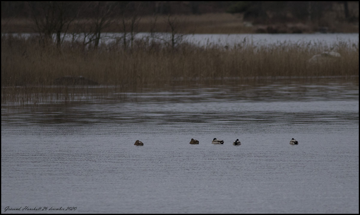 | 26 december. Det finns inte mycket fågel att titta på och ännu färre att fotografera. Jag får nöja mig med några gräsänder nära norra Sirköbron. | |