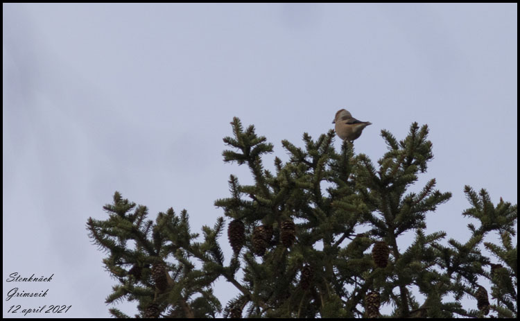 | 12 april. Dåligt med bilder nu men lite får jag skylla på vädret. Vid dagens tur till Jätfjorden fanns en stenknäck i alla fall. |