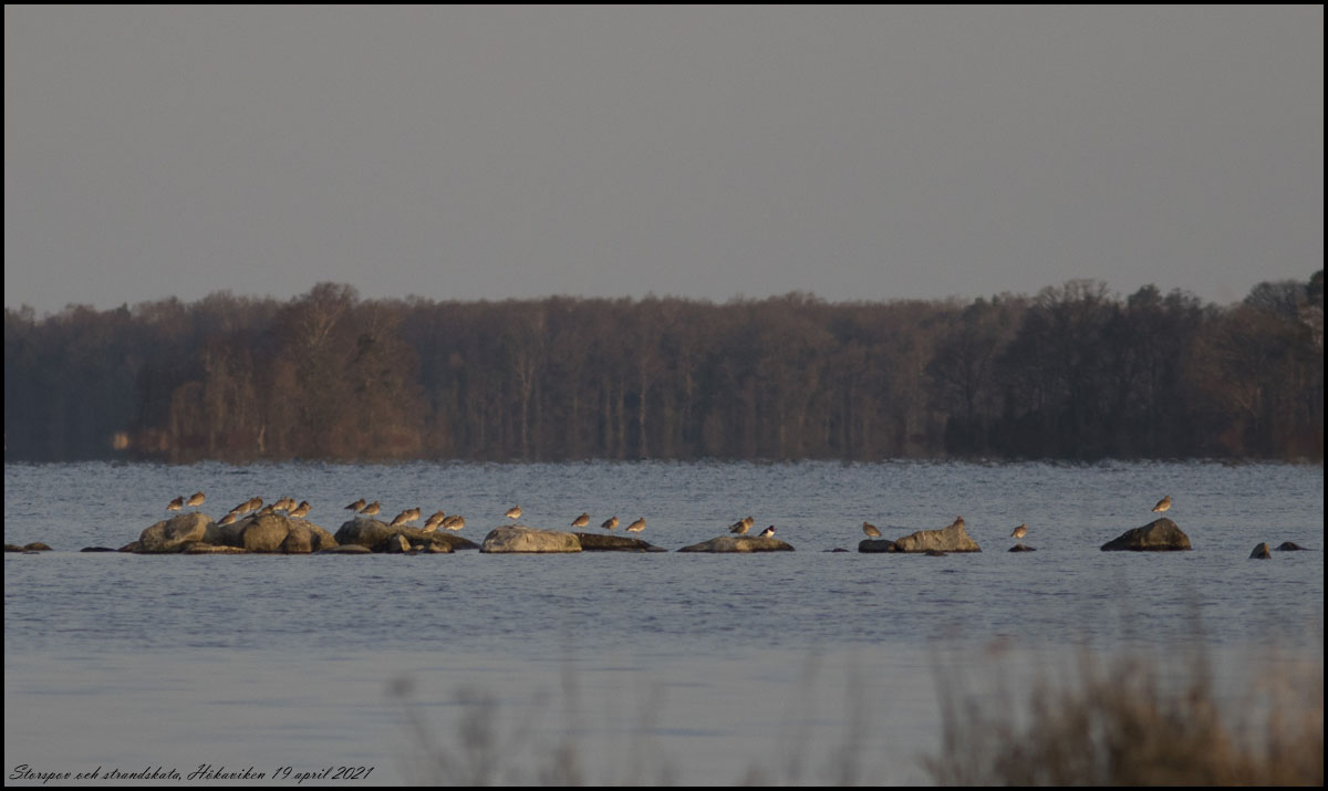 19 april. Härliga vårkänslor vid Hökaviken idag! Storspov och strandskata, stjärtand och sävsparv fastnade på bild men vi såg också mycket annat. |