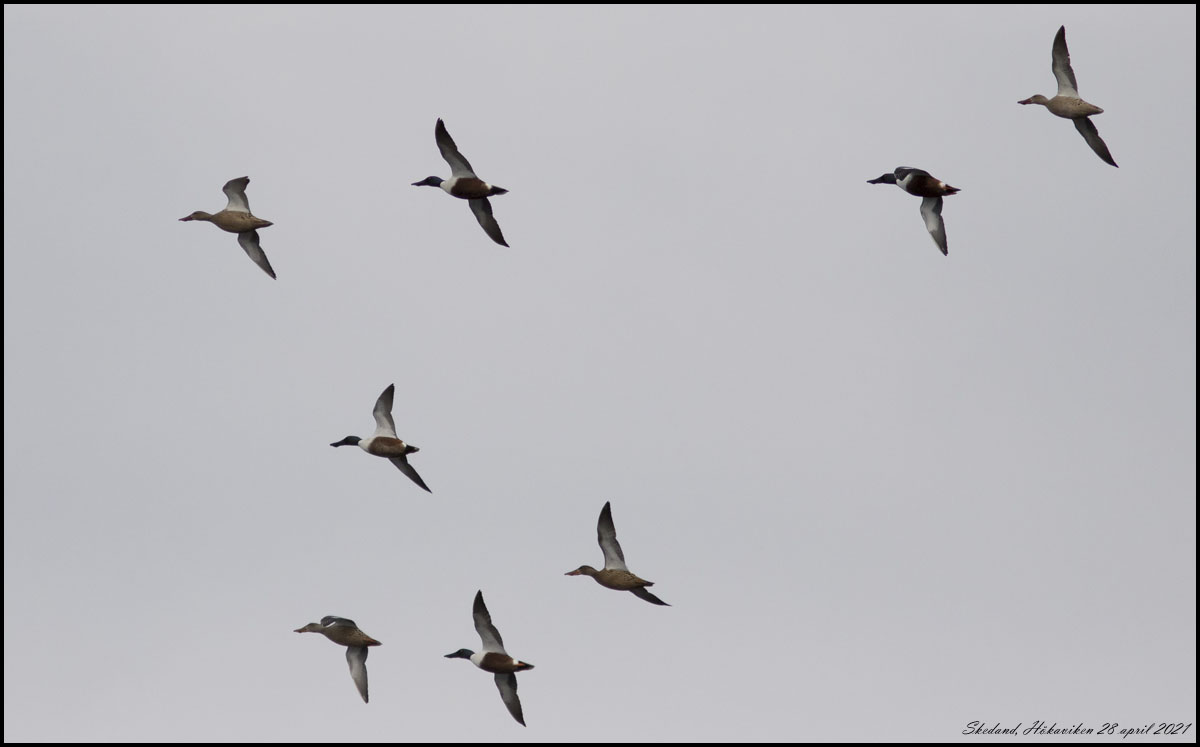 20 april. Småskrakar som rastat vid Jätfjorden lyfter och drar vidare mot öster. |