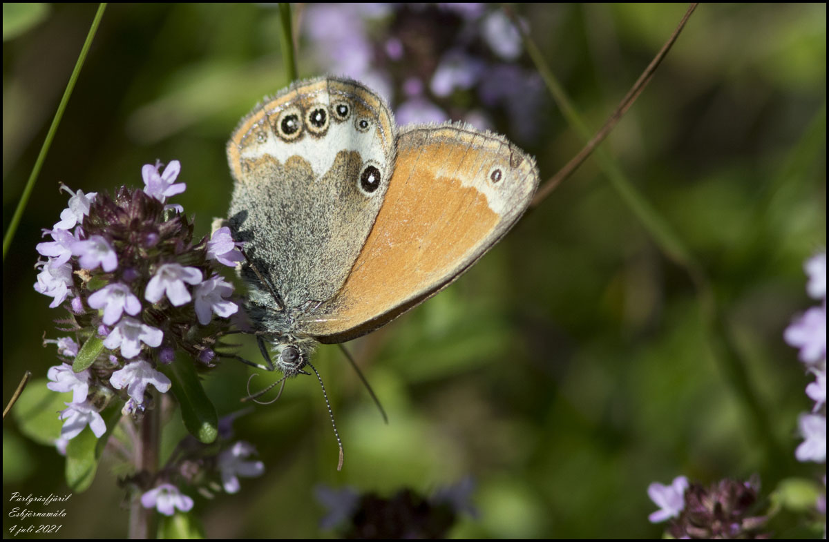 4 juli. Idag har jag sett pärlgräsfjäril hemma. |