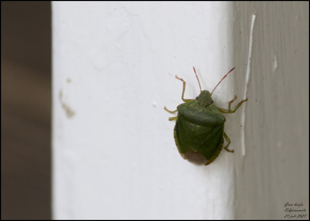 27 juli. Grön bärfis hemma på verandan |
