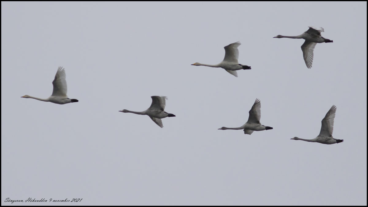 | 9 november. Sångsvan och gäss sträckte mot sydväst över Jätfjorden idag |