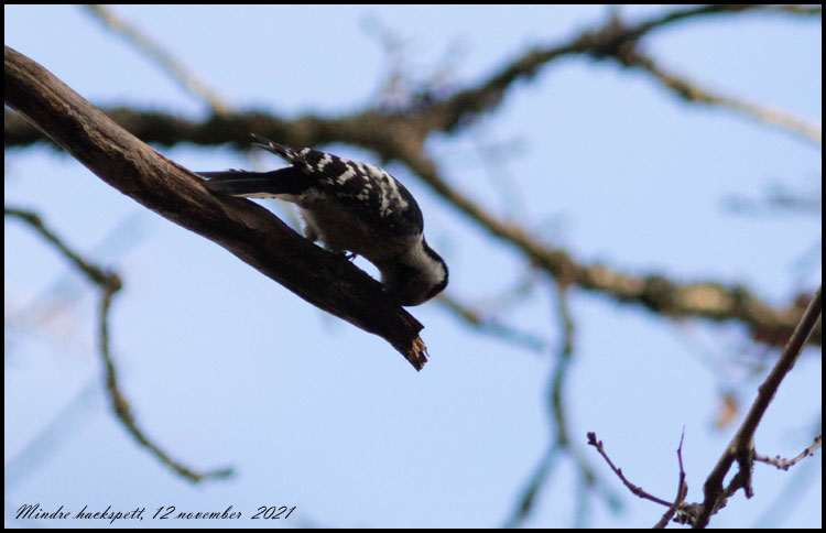 | 12 november. Mindre hackspett i skogen vid Grimsvik. Var fanns den den senaste helgen? |