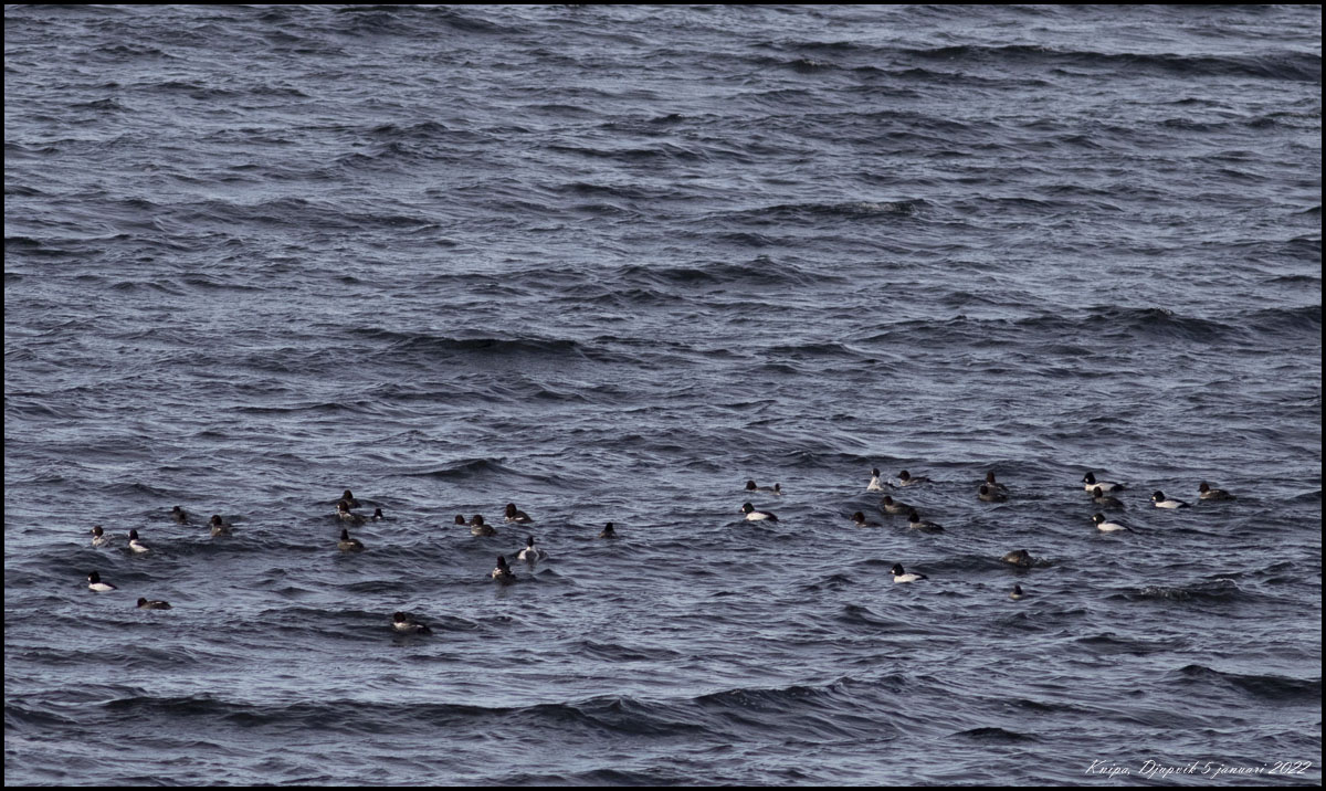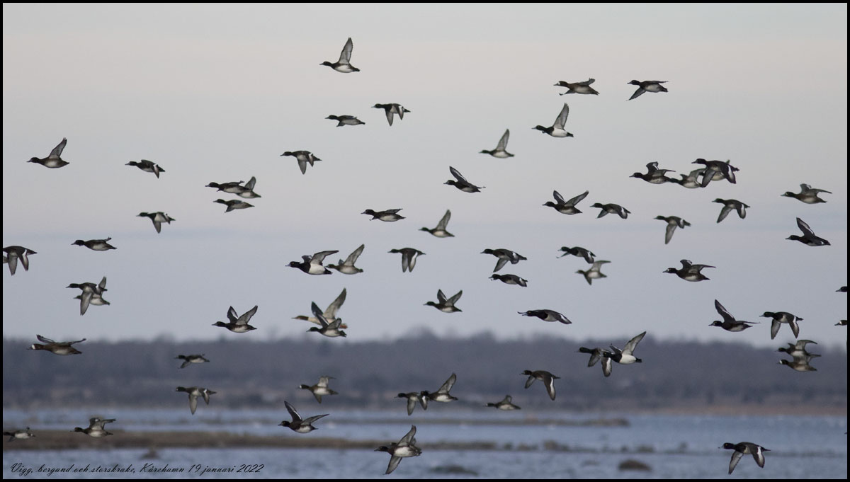 19 januari. GVigg, bergand och ett par strorskrakar vid Kårehamn. |