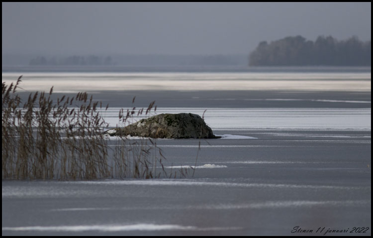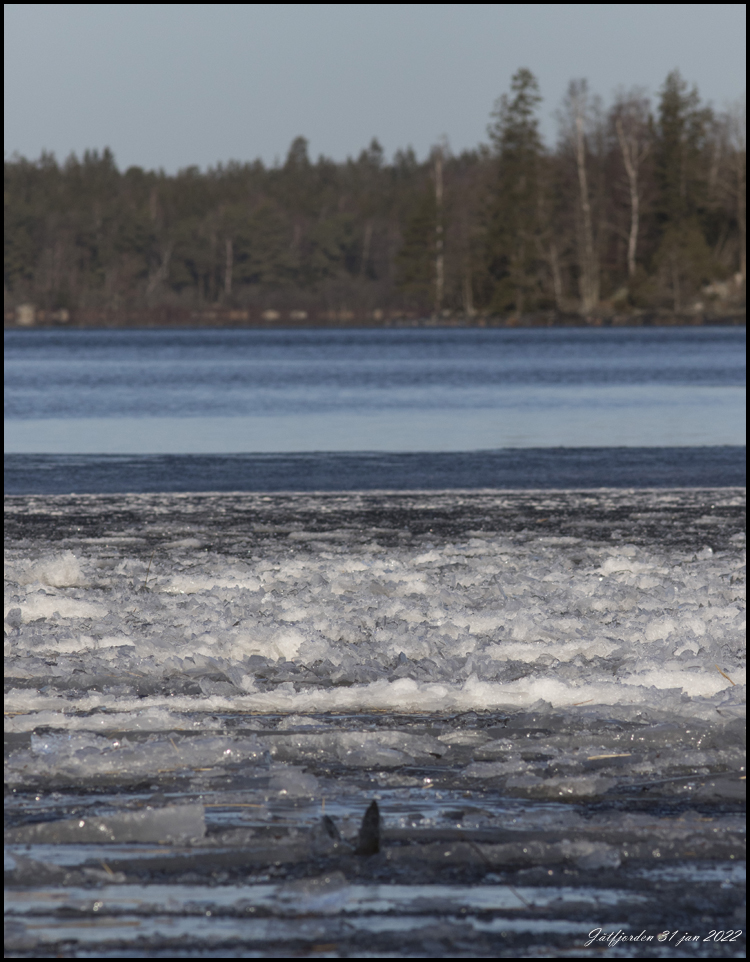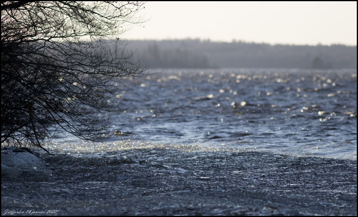 14 januari. Häromdagen var sjön helt istäckt men efter ett dygns hårda vindar är det nu öppet vatten. |