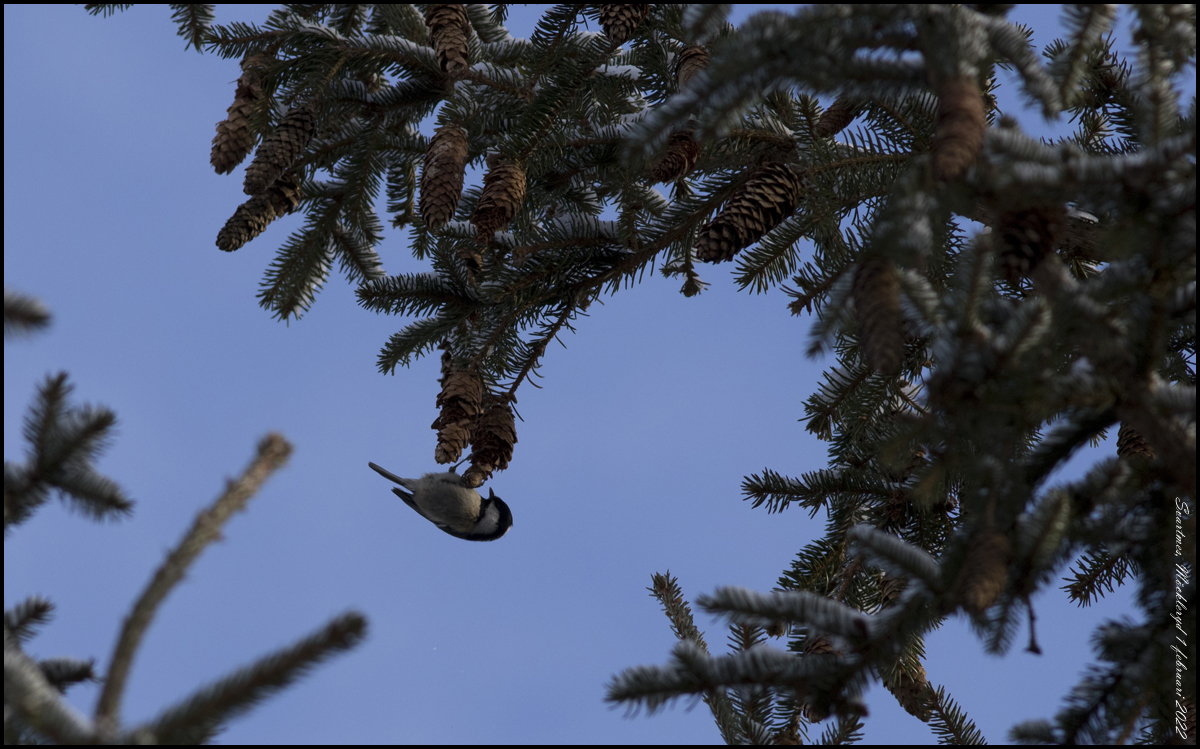 1 februari. Svartmes på dagens promenad förbi Möckleryd. Bilden är inte opp och ner! |