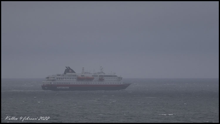 Vi blev lite förvånade av att se Hurtigrutten utanför Kullen men hon hade varit på service i Landskrona. |