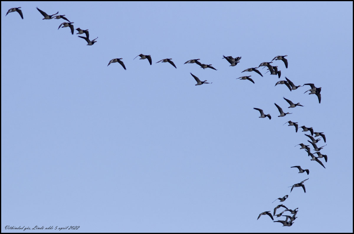 5 april. Sträckande vitindad gäss vid Lindö udde sydost om Ronneby. |