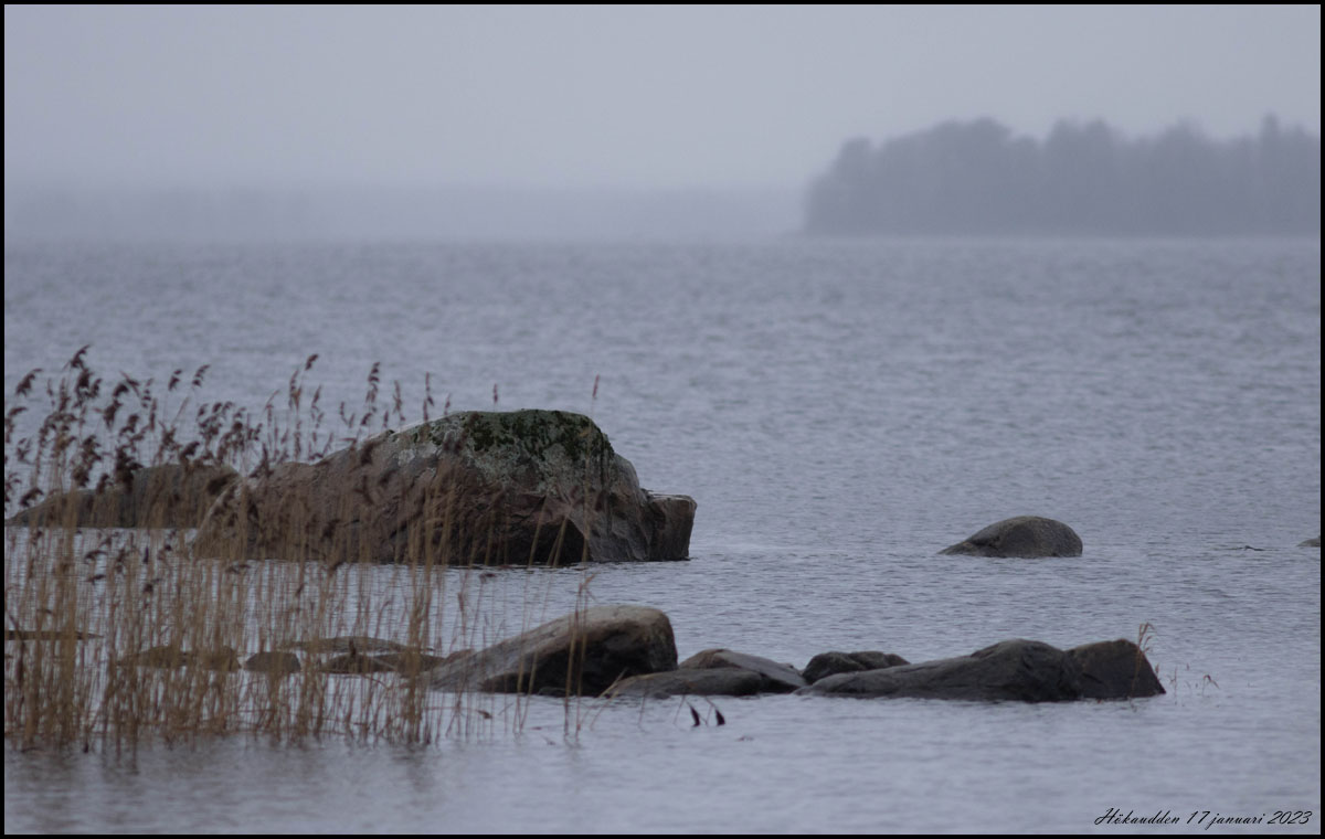 | 14 januari. Idag har vi gått ut på yttersta udden vid Vialm. Vi hittade två snösparvar. |