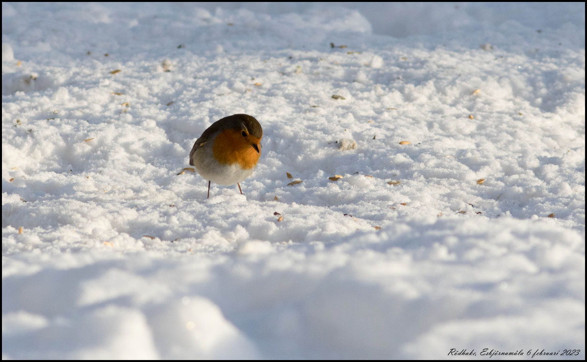 | 6 februari. Rödhaken hemmavid visade upp sig fint när vi fikade på knuten. |