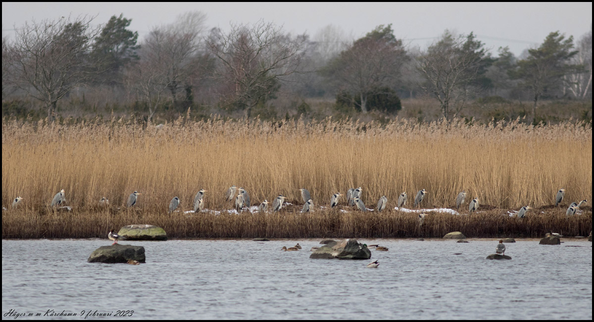 | 9 februari. Precis som förra gången i januari finns det många hägrar i Kårehamn |